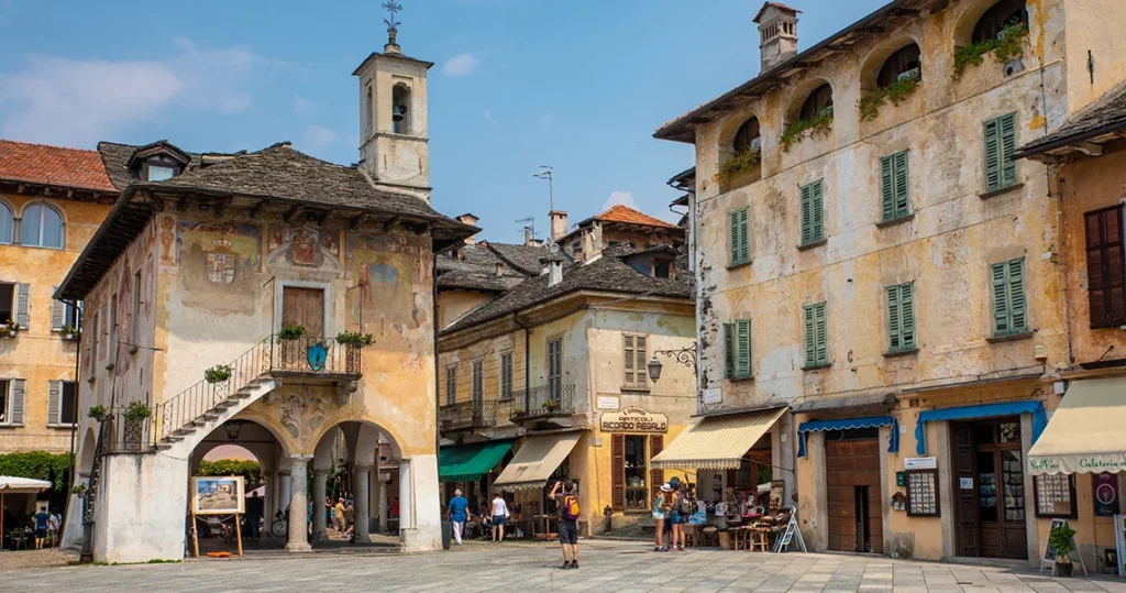 Il cuore di Orta è il suo centro storico, caratterizzato da vicoli acciottolati, palazzi storici e piccole botteghe. Passeggiando tra le sue stradine si arriva a Piazza Motta, affacciata direttamente sul lago, uno dei luoghi più fotografati della zona.